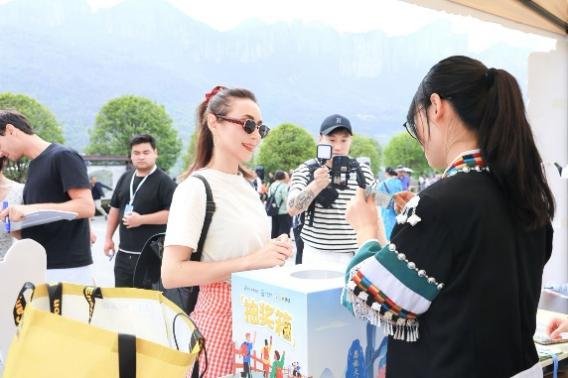 恩施市文化和旅游局局长李国玲来到现场,与前来体验快闪互动的外籍大V卡丽娜亲切交谈