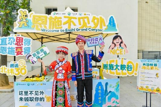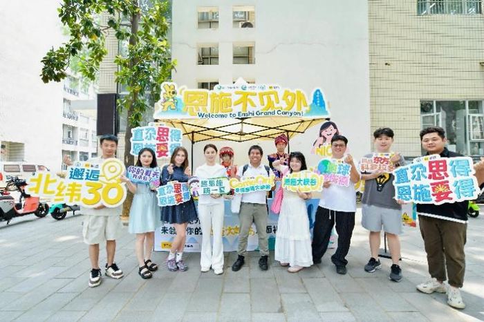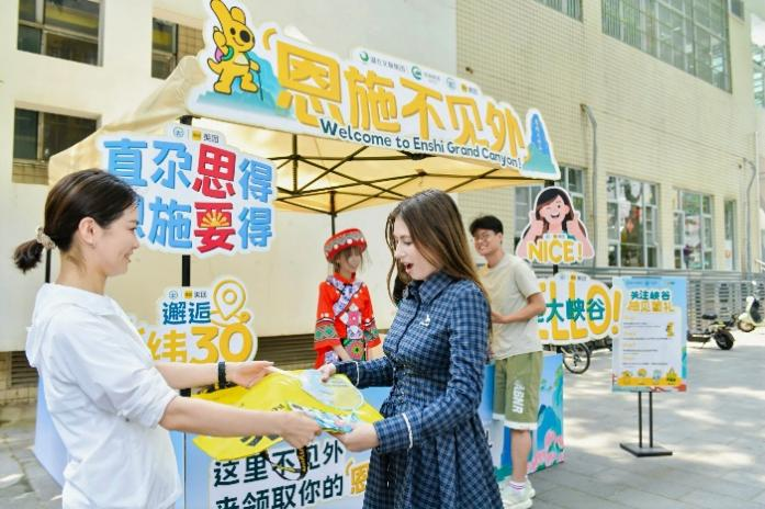 结合5月19日中国旅游日节点,本次活动充分展示了恩施大峡谷这张文旅名片的魅力,也向世界展现恩施文旅的开放包容与创新活力,得到了恩施市文化和旅游局的关注和支持。 5月27日,武汉大学快闪活动作为恩施市“凉交会”分会场顺利开展。恩施市文旅局主要负责人与前来体验快闪互动的外国留学生亲切交谈,并热情欢迎他们来恩施旅游,还为他们送上见面礼周边。留学生们手持周边在快闪点位前留下合影,生动诠释了“恩施热情不见外”的国际友好活动内核,展现了恩施市开放包容的城市形象和对国际游客的热情欢迎。