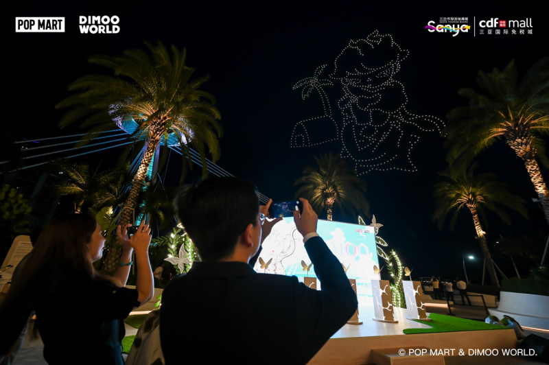 DIMOO自然之旅开启 本次合作以三亚最具代表性的蜈支洲岛、天涯海角、三亚湾等知名地标为载体,深度植入了DIMOO“自然的形状”系列的设计灵感,与景观细节高度融入,共同构建沉浸式艺术体验新场景。这些融合自然美学与潮流IP的艺术装置,不仅成为暑期吸引游客打卡的新地标,更通过独特的视觉语言,为三亚打造世界级旅游消费目的地注入创新活力。当晚,一场以璀璨夜空为幕的无人机光影秀点亮三亚,正式拉开了“DIMOO三亚自然之旅”的序幕。