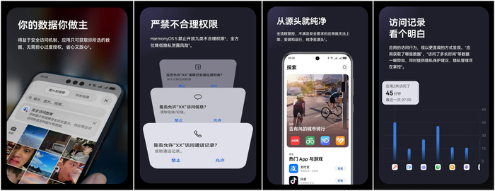 更进一步,华为浏览器实现了网站级的权限精细化管理。任何网站如需获取用户的位置、相机等敏感权限,都必须弹窗明示并由用户主动授权。用户可以选择“仅在使用期间允许”或单次授权,告别了“一次授权,永久有效”的模糊状态,让每一次授权都可知、可控。 华为应用市场:重塑分发秩序,从“管权限”到“管数据” “安装一款课程表App,为什么需要读取我的整个相册和通话记录?”道出了许多学生用户的困惑与无奈。在部分第三方应用市场,应用上架审核标准不一,恶意软件、捆绑插件屡见不鲜。更普遍的是,许多应用存在过度索取权限的问题,用户在“不同意就无法使用”的霸王条款面前,往往只能被迫让渡个人隐私,愈发“透明”的数字生活令人不安。 面对应用乱象,作为鸿蒙唯一的官方应用分发平台,华为应用市场AppGallery承担了“守门人”的角色。它从应用上架到运行的全流程,重塑了隐私安全规则。华为应用市场每一款上架应用都经由超过200种检测技术的“四重检测”体系,并由专家团队严格审核,确保应用实名可追溯,从源头杜绝侵权软件流入。 鸿蒙5带来的创新性变化,是从“管权限”到“管数据”的理念升级。以更换社交应用头像为例,过去的应用会申请访问整个图库的权限,用户的万千照片都可能暴露在应用视野之下。而基于鸿蒙全新的安全访问机制,系统会代替应用向用户请求数据。用户通过系统级的照片选择器,主动选择某张照片提供给应用,而应用自始至终无法窥探整个图库。这种“按需授予、最小化获取”的模式,釜底抽薪般地解决了权限滥用问题。