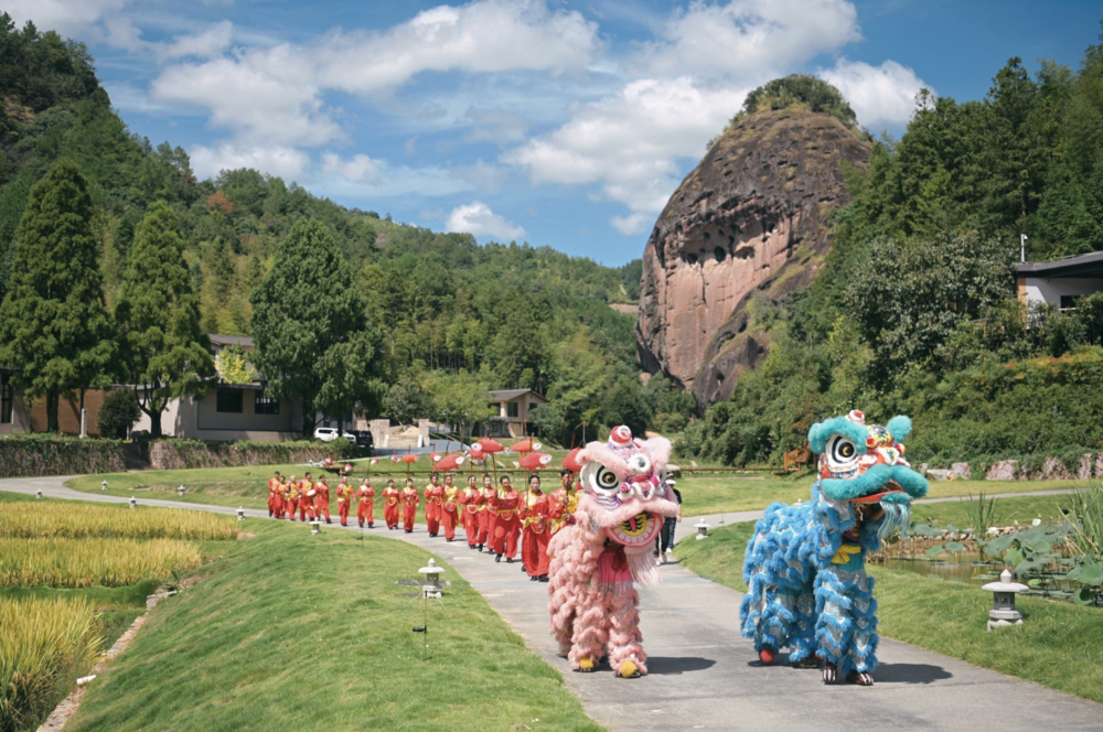 观山度时,静心启境 秋晨的【ANAPANA安纳班纳·泰宁】浸润于丹霞秋光山色的滋养中,伴随着鱼子灯巡游,一场空灵唱诵于草木山林间缓缓流淌,唤醒天地山野的静谧与灵性。开业典礼现场嘉宾云集,中国作家协会会员、中外散文诗学会副主席、方圆建设集团董事长任剑峰,中国食品工业协会国食智库秘书长冯全普,第六批全国老中医学术继承人、首都医科大学大兴医院杨惠卿,泉州华光职业学院董事长、创始人吴其萃,福建省乡村振兴促进会区域公共品牌运营中心、福建海峡西岸知识产权研究院负责人李劲松,盈科总部高级合伙人律师、盈科总部公司资本事务部主任、清盈科创基金高级合伙人吕馨等各界嘉宾行业嘉宾、艺术家与媒体齐聚丹霞崖壁之下,以简净仪式替代喧嚣庆典,映照观度·ANAPANA“回归本真”的精神内核。开业仪式现场以疗愈唱诵、吉狮开运启幕,传统礼俗与自然场域相融,为开业庆典注入祥瑞之气,共启这一方隐逸天地。