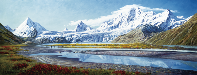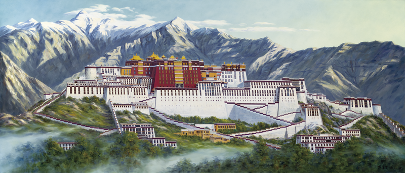 一幅幅画作中,以大自然赐予西藏的自然景观为主,从雪山冰川、森林瀑布、江河湖泊,到广袤的草原、风沙戈壁、奇峰怪石。以及雄险奇特的名胜古迹人文景观,如布达拉宫、古格王朝、皮央石窟,古石雕楼、古木屋、古民居等。