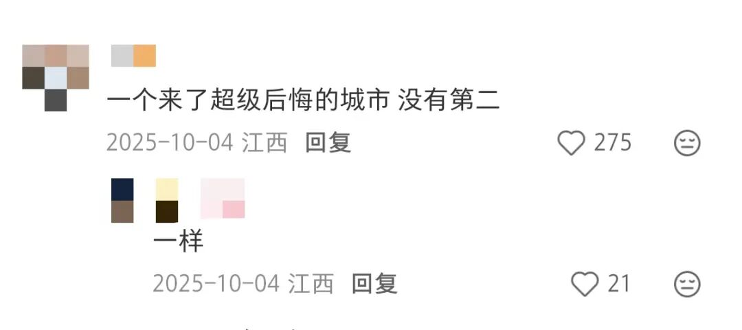 图注:澎湃新闻 也就是说,合川出圈全程毫无铺垫,很大程度上说明其运气足够好,而不是前期文旅准备得有多充分。 其三,即便是高流量网红,多数游客反馈这些目的地“去一次就够”。 景德镇其实在鸡排哥出圈之前就很火,不少游客慕名而来,但他们留下了这样的评价。