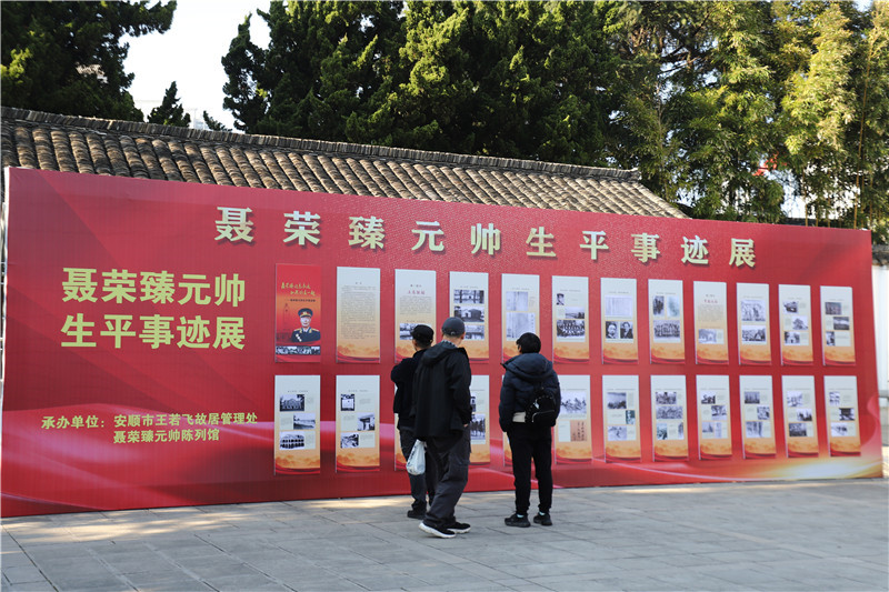 发表时间:2026-02-12 12:00来源:中国文明网 近日,安顺市王若飞故居陈列馆广场暖意融融,“聂荣臻元帅生平事迹展”在此展出,一张张珍贵照片、一件件文献资料吸引众多市民游客观展。 此次展览由王若飞故居管理处与聂荣臻元帅陈列馆共同承办,展览于2026年元旦开展,将持续至2月下旬,全程免费向公众开放。展览以立志报国、开国元勋、科技主帅、新的长征四大板块为主线,通过展出的一张张弥足珍贵的历史照片和一件件文献资料,让广大市民游客真切感受到了聂荣臻元帅为民族独立和解放、为祖国繁荣富强拼搏奉献的革命精神,特别是聂荣臻元帅在“两弹一星”、核潜艇研发等国防科技领域的开拓性贡献。